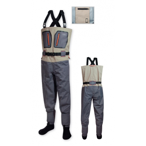 Hart SKIN 5Z è il Wader della collezione Hart che abbina la leggerezza del tessuto microfibra laminato 3 strati impermeabile (15000mm) e traspirante (4000g/m2/24h), al tessuto 3 strati laminato con esterno in cordura antistrappo che garantisce la massima protezione da rovi ed usura sulle gambe.