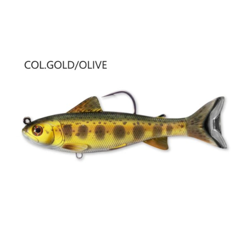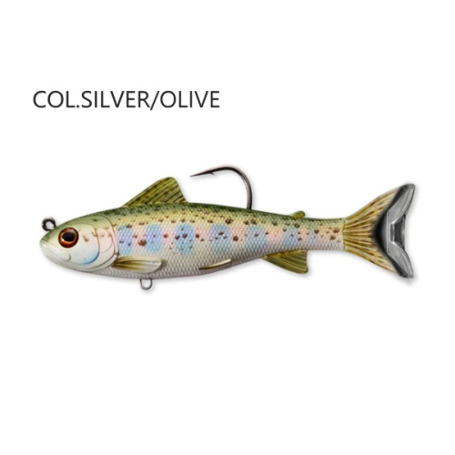 LIVETARGET offre due varianti del Trout Swimbait. La taglia più piccola ha le caratteristiche di una trota Parr. I modelli di colore riflettono le apparenze chiare e scure che si trovano comunemente in questa specie. Il Parr ha un'azione di oscillazione stretta.