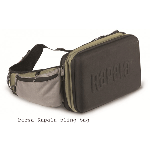 Pratica borsa a tracolla per lo spinning corredata da 2 scatole porta esche : 25 x 7x 4 con divisori. Moschettone esterno ottimo per agganciare utensili ,tasca esterna porta accessori.