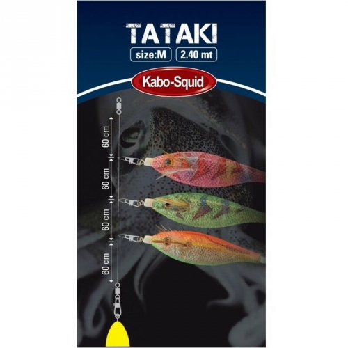 Montatura pronta per la pesca di calamari,lunga 2,40mt,con girella per l'aggancio del piombo,e girella per unire la lenza del mulinello alla montatura stessa