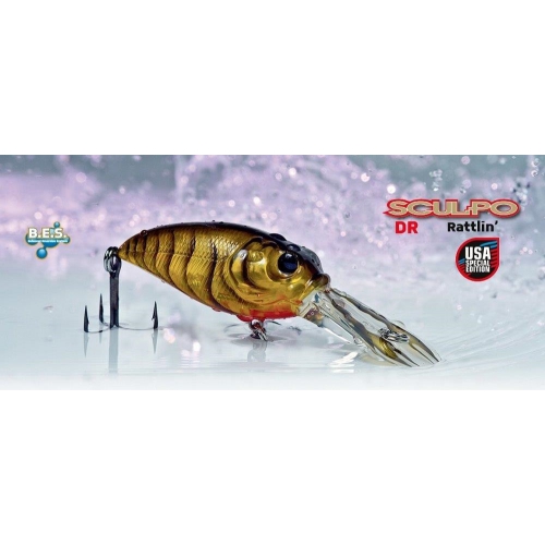 Lo SCULPO DR RATTLIN’ USA SPECIAL EDITION è un crankbait di alto profilo tecnico che racchiude in sé tutte le caratteristiche più importanti che il pescatore ricerca in un artificiale di questa categoria: azione unica, funzionalità in pesca, innovazione, massima cura del finissaggio e dei dettagli. Lo SCULPO DR RATTLIN’ USA SPECIAL EDITION ha un profilo ribassato tra le cui caratteristiche spicca un wobbling unico e molto marcato, ottenuto dopo lunghi test e un accurato studio sulla distribuzione dei pesi al suo interno (B.E.S.). Queste caratteristiche gli conferiscono un’esclusivo movimento di nuoto ed eccezionali prestazioni anti incaglio tra gli ostacoli sommersi.-Azione: