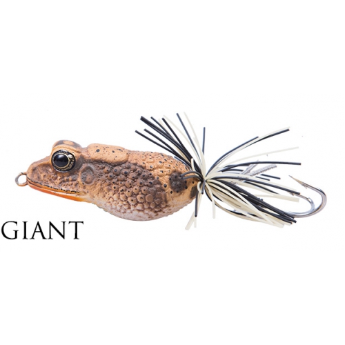 Questo artificiale è volutamente ispirato al rospo gigante in quanto possiede una geometria corporea ed un peso ideale per ottenere lanci lunghi e precisi. E' dotato di rattles interni, doppio amo VMC black nickel, skirt di alta qualità ed un formidabile sistema antialga regolabile (molla in acciaio ricoperta con tubo di silicone)