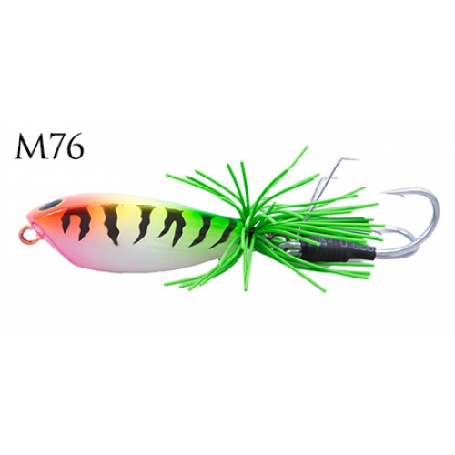 Artificiale Top Water di reazione. Fende la superficie dell'acqua con spruzzi ed un effetto poppin. Con recupero costante saltella sulla superfice, con jerkate crea notevoli spruzzi.