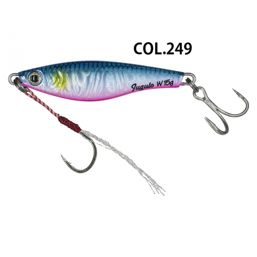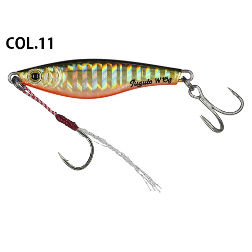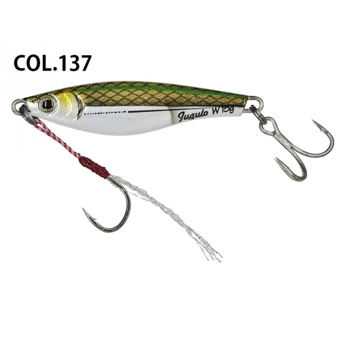 È un metal jig ideale per le moderne tecniche di spinning e ultra light jigging. Il nuoto è erratico e naturale, il profilo wide permette una lenta azione di caduta (slow fall action). Determinate nelle situazioni di apatia, risulta eccellente quando i predatori cacciano su foraggio di piccole dimensioni. Jugulo Wide è realizzato attraverso materiali e vernici di elevata; le colorazioni sono tutte tutte rifinite con finissaggio UV coating. Equipaggiato con ancoretta e assist hook dressato.MODELLO: