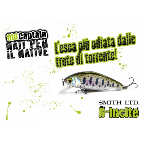 Smith D-Incite , raggiunge il fondo molto velocemente. I riflessi di luce prodotti dal movimento Rolling sono estremamente apprezzate dalle grosse Trote Fario. Molto efficace in acque fonde, è un valido alleato in caso di forti correnti dove la sua proprietà affondante permetterà di sondare vari strati di profondità.