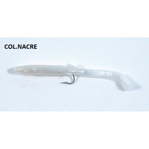Raglou Ragot si differenzia da tutti gli altri artificiali per il suo movimento del corpo associato a quello della coda che trasmette vibrazioni a bassa frequenza. Queste onde vibratorie richiamano i predatori come i serra, branzini, lecce, letterati. Il profilo e il colore trasmettono segnali visivi, i quali innescano poi l'attacco finale. Monta un amo VMC 9255 misura 1/0 Lunghezza 10.5 cm