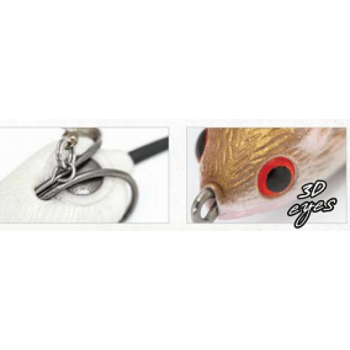 Il Dancer Mouse è dotato di una piombatura decentrata per volare lontano e cadere già in assetto di recupero, la coda è flessibile e sinuosa capace sviluppare vibrazioni supplementari, mentre la paletta è assistita da una girella di tipo rolling. Con la pressione esercitata dalla bocca del predatore il morbido corpo collassa, esponendo le micidiali punte dell'amo doppio in acciaio dall'alto tenore di carbonio. Sul muso, l'occhiello di collegamento alla lenza è sigillato per evitare l'ingresso di acqua. E' indicato per la pesca del luccio e del bass Misura 65 mm