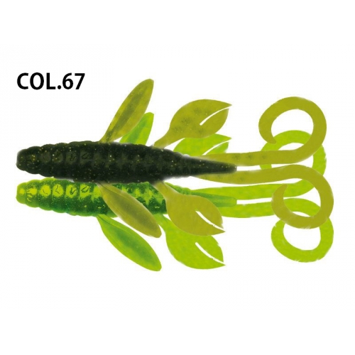 La Freaki flip è una creature bait che nasce da un progetto volto ad ottenere un esca compatta ma in grado di penetrare bene tra la vegetazione e gli ostacoli sommersi, e comunque di sviluppare molte vibrazioni in acqua.L'elevata quantità di sale micronizzato e l' aroma agli amminoacidi al vero estratto di gambero con qui è impregnata ne aumentano notevolmente il potere catturante.I"flaps" sul corpo oltre ad emettere vibrazioni ,trattengono l' aria accumulata durante il lancioe la rilasciano lentamente in fase di recupero,creando un richiamo importantissimo per ogni specie di predatore.
