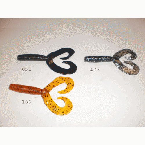 Big double tail di Gay Yamamoto è un grub a doppia coda indicato come trailer per jig,innescato su teste piombate può essere usato per il finesse.