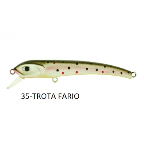 Artificiale nato per pescare sia in acque mosse e veloci, sia in lago, ottimo per la pesca di trote, cavedani e persici ma anche di black bass e aspi. Adatto per recuperi normali, ma anche con violente jerkate cosi come ripetuti stop e go, dove si distingue l effetto SLOW SINKING. Interessanti i colori pensati anche per la pesca in mare. LUNGHEZZA-PESO: 6,5cm-4gr