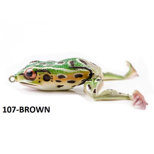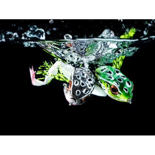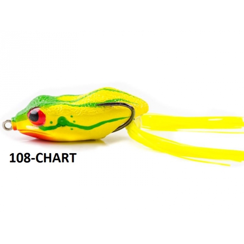 Questa rana puo essere utilizzata sia con le innovative zampette in silicone rinforzate internamente e unite al corpo con un originale collegamento per farla nuotare o saltellare sulla superfice, che equipaggindola con il double skirt da infiltrare nelle cover piu fitte come una classica skippinig frog.