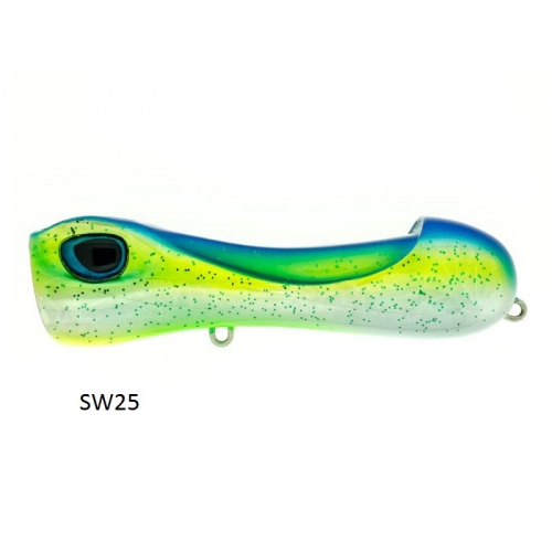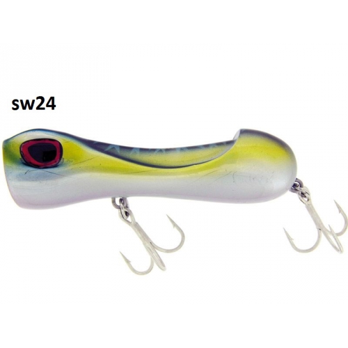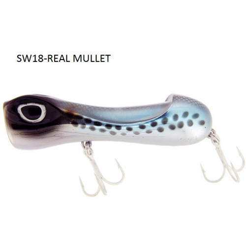 Il profilo aerodinamico soddisfa il pescatore che vuole performance nel lancio anche contro un forte vento, mentre l equlibrio dei pesi,combinato con il disegno del corpo,lo rende stabile nel nuoto. Per garantire una struttura di grande resistenza è stato utilizzato un ABS di grande qualità. Ancorette e split ring sono di ottima qualità,dotato di armatura psssante. SPOPPER è un artificiale adatto ai grandi predatori del Mediterraneo e ai piccoli e medi perdatori tropicali. Va recuperato a strappi o allungando la jerkata crea dei tunnel di bolle, lo si puo recuperare anche velocemente dove mantiene la stabilità senza uscire dall acqua