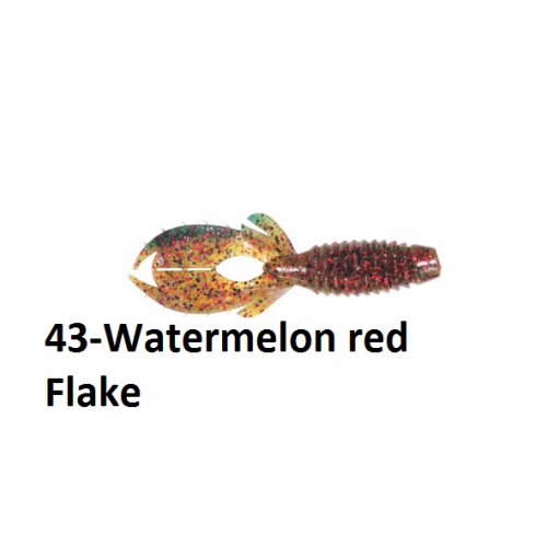 Il Flap Craw da 4" è un gamberone con un corpo robusto e ricoperto da anellature che raccolgono l'aria rilasciando le bolle in caduta,grazie alla sua forma si ha una ottima mobilita delle antenne che delle chele che si presentano unite ma che possiamo separare per modificare il nuoto e le vibrazioni dell'esca.