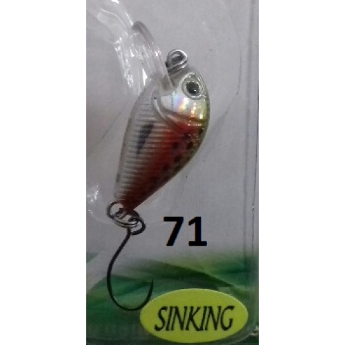 Crank di dimensioni ridotte;monta un monoamo senza ardiglione.Si rivela ottimo per la pesca Light Spinning in lago,ma anche in fiume in presenza di medie correnti.Se lo si recupera normalmente il suo nuoto sara molto frenetico;lasciandolo senza trazione tendera a scendere di coda,con movimento barcollante del tipo Wobbler.